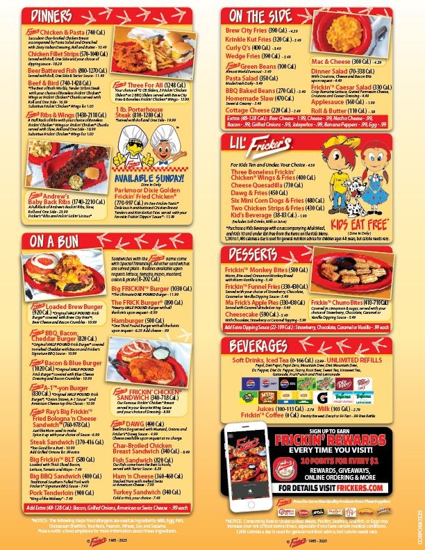 Welcome to Fricker's - Defiance, a cozy spot located at 1005 N Clinton St, where flavor meets fun! The menu is a treasure trove for food lovers, featuring a variety of delicious pizzas, wings, and refreshing beverages.